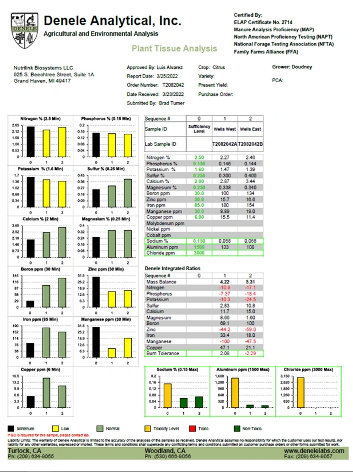 This journal article detailed how over 100 years ago healthy citrus was grown employing cover cropping, composting and green manures. We took this to heart and implemented a program focused on cover crops, organic matter and soil biology as the primary methods of fertilizing our trees. One common theme heard over and over again in various seminars we attended, focused on the majority of a crop’s nitrogen needs being supplied from the atmosphere. The air over every acre of land is over 70% nitrogen gas. It is the soil and foliar microbes that grab that gas and change it into a form in the soil or on the leaf that the plant can utilize. What has transpired from the mineral balancing, soil biology approach is that the trees at the research farm are maintaining desired Nitrogen levels with minimal Nitrogen being applied to the soil.